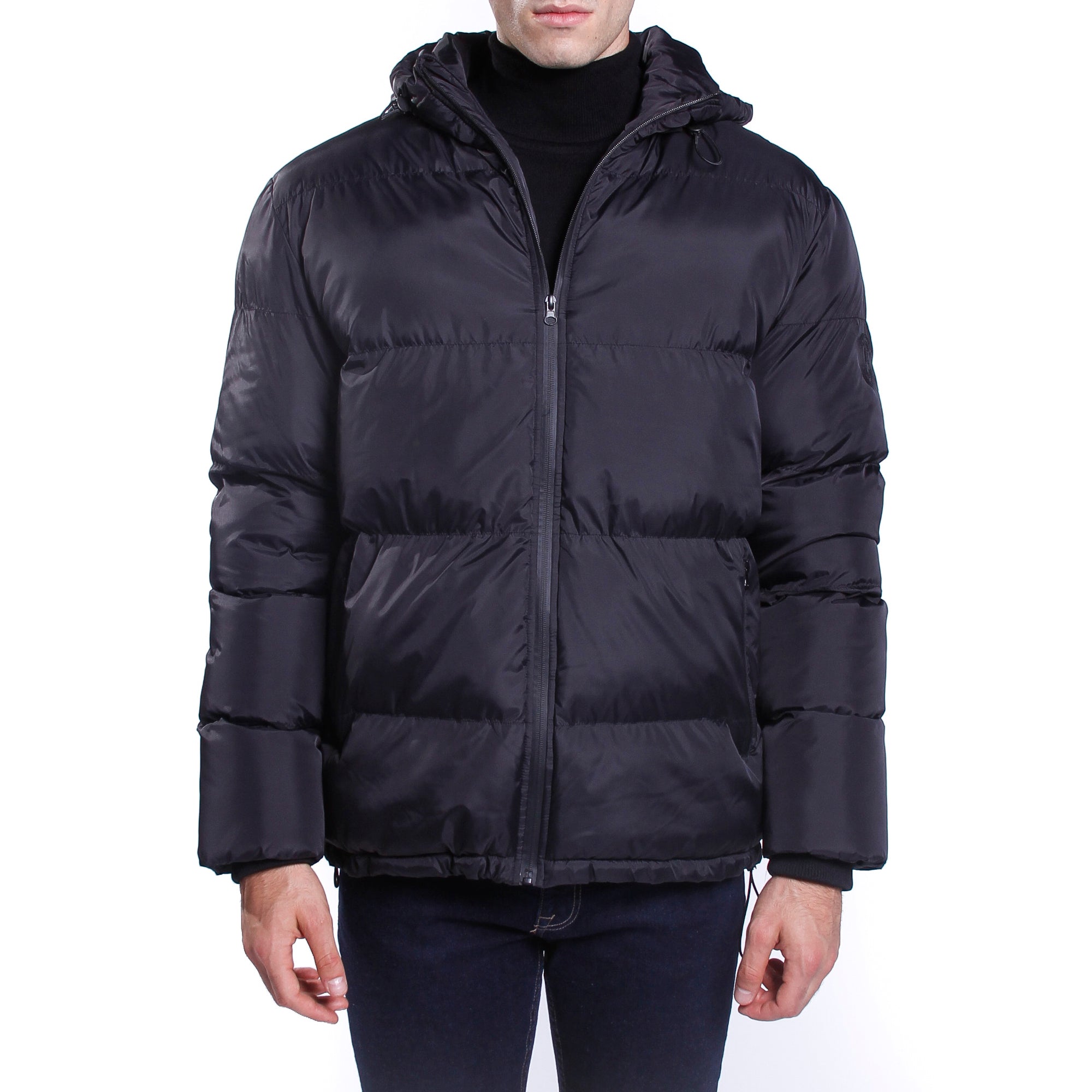 Nylon jacket with hood and logo on the sleeve