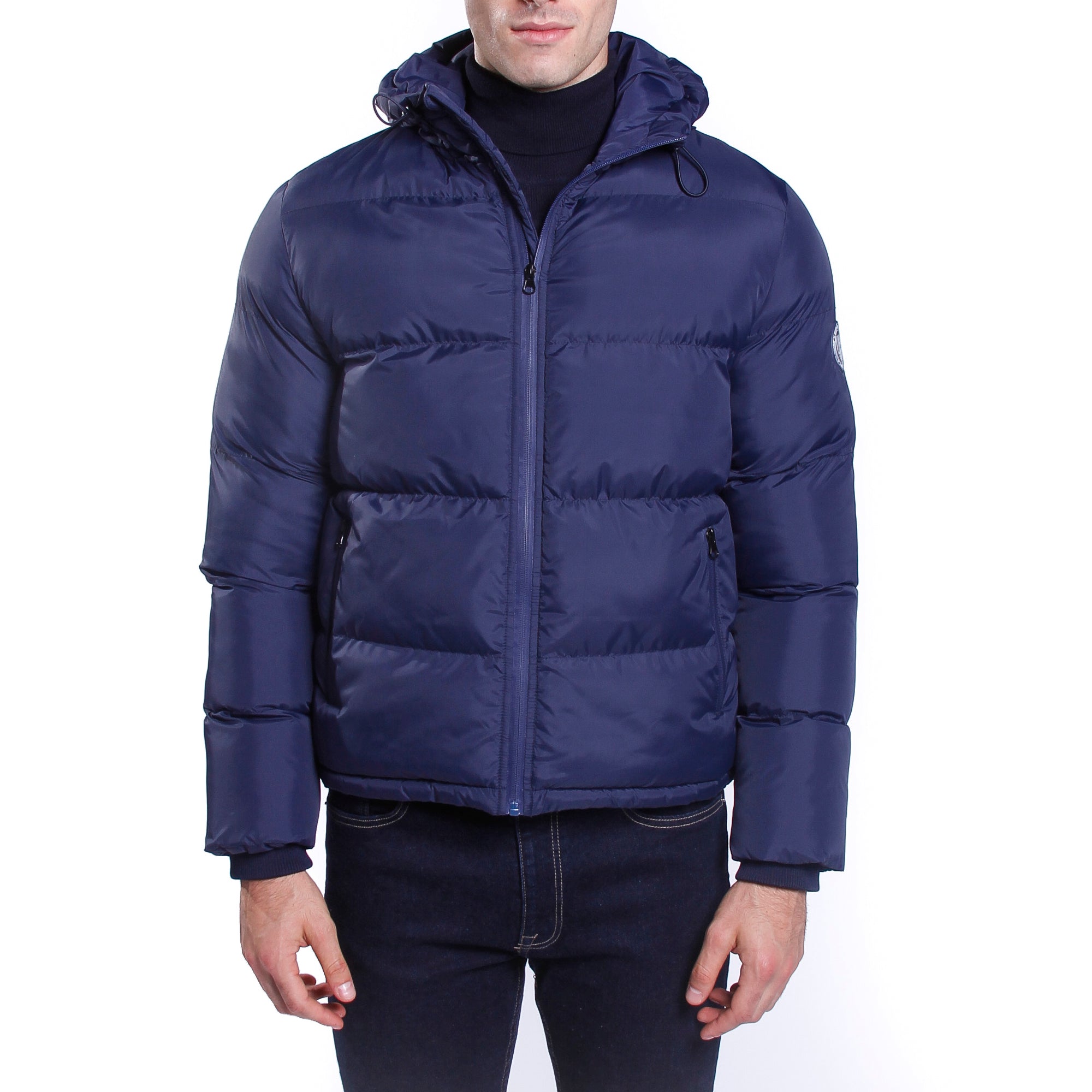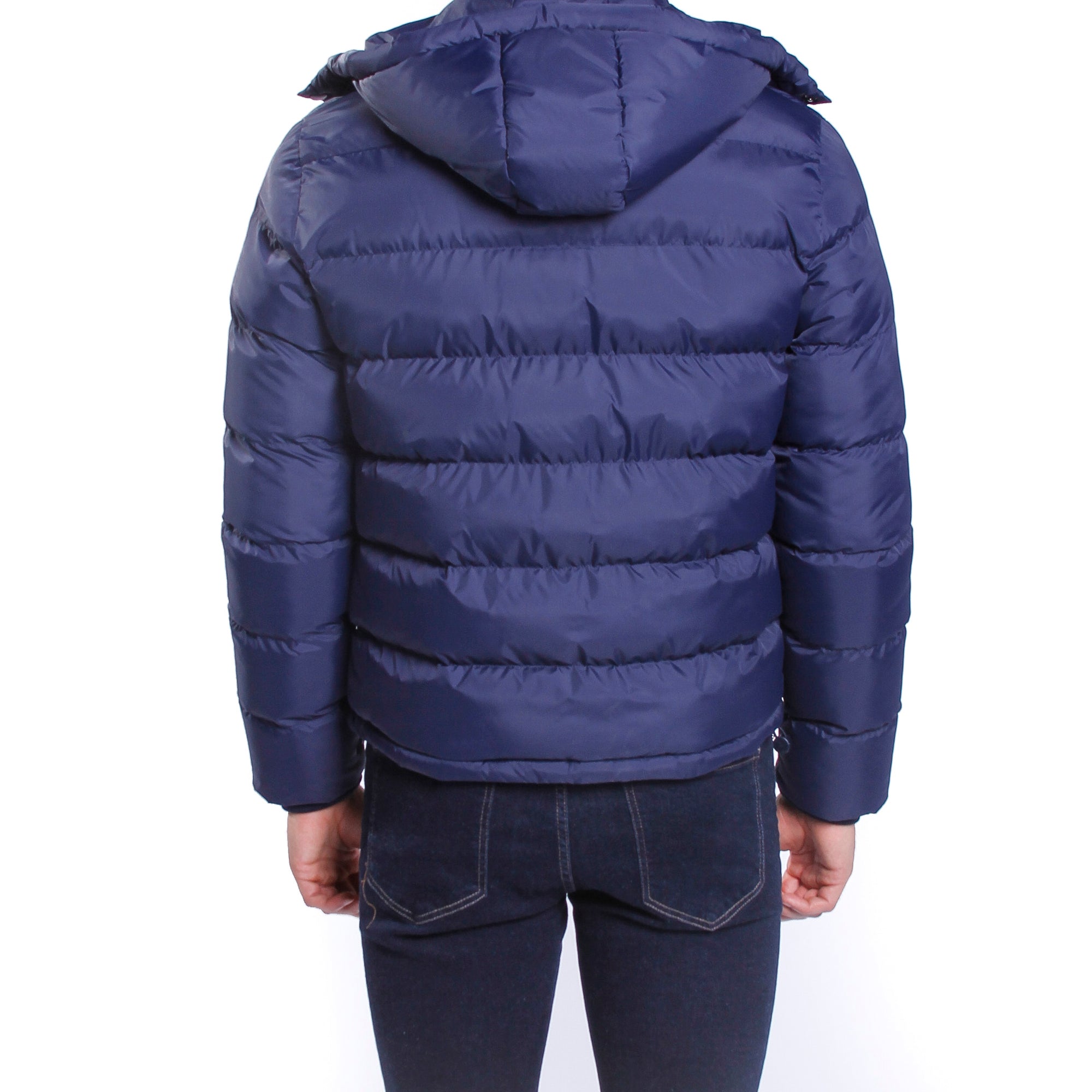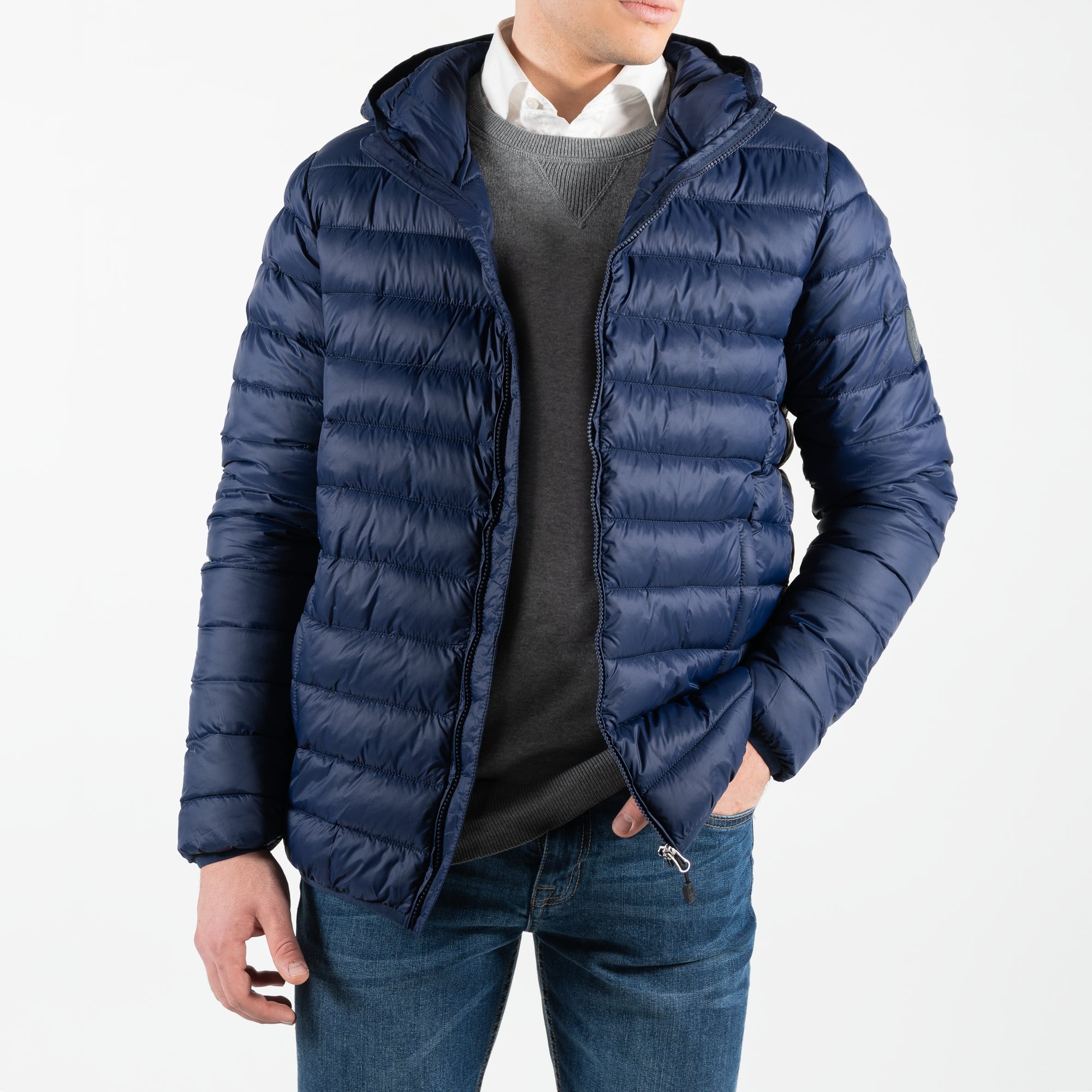 Giubbino nylon con cappuccio e logo su manica Blu