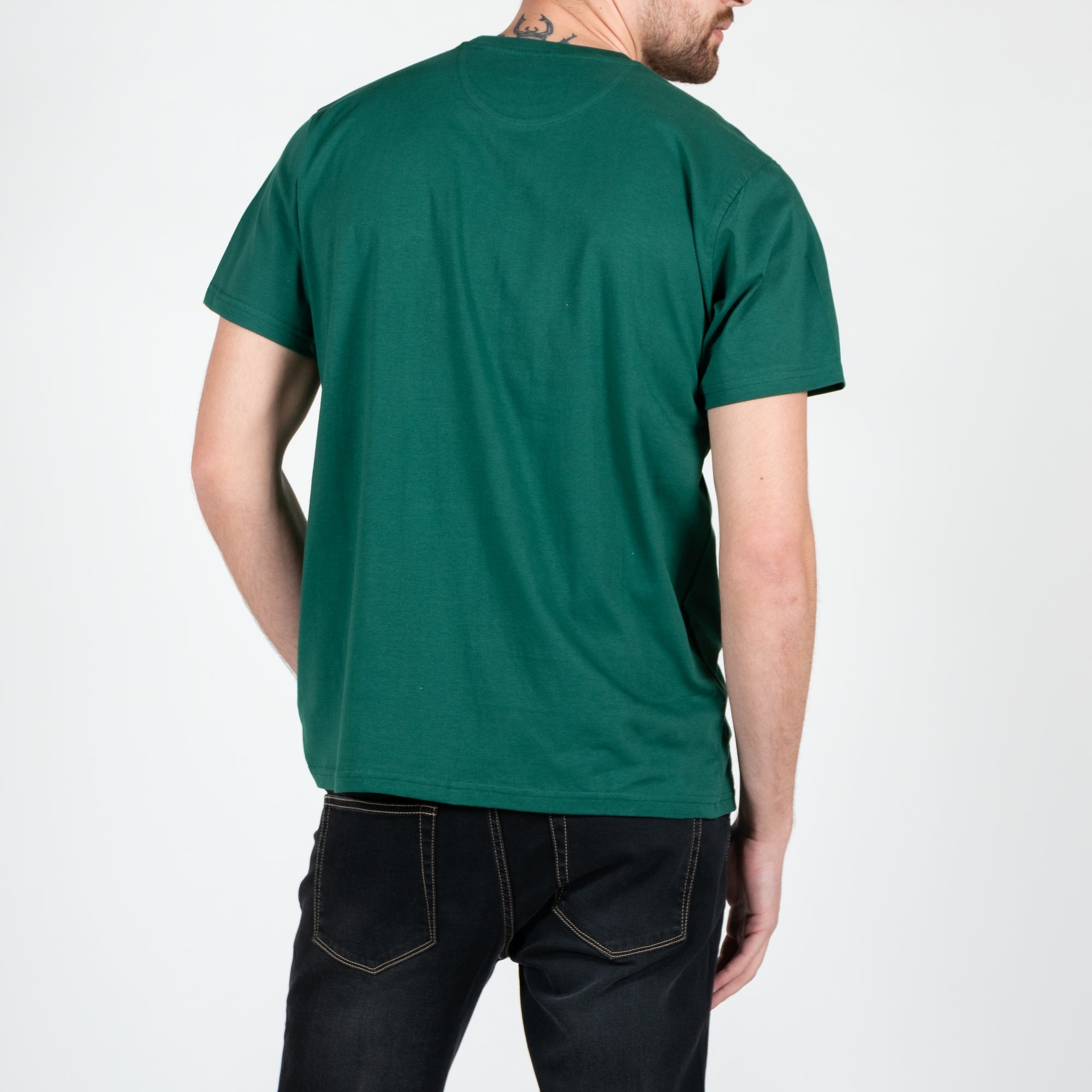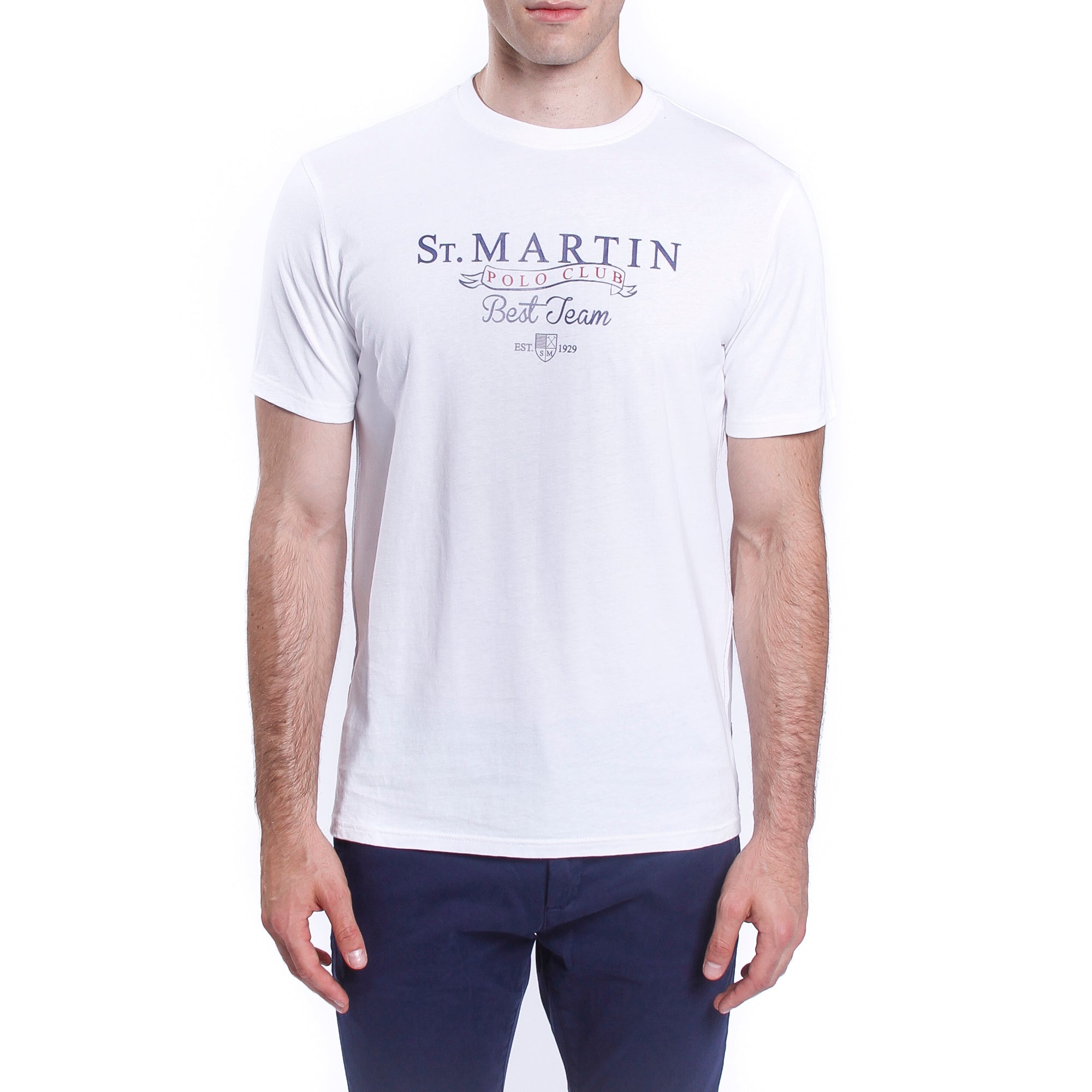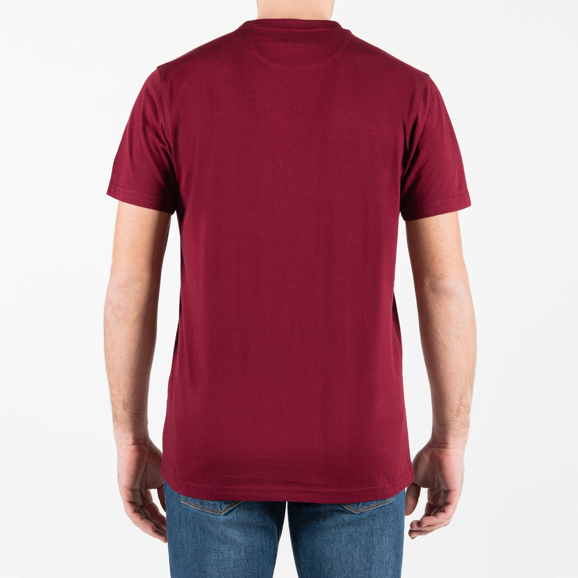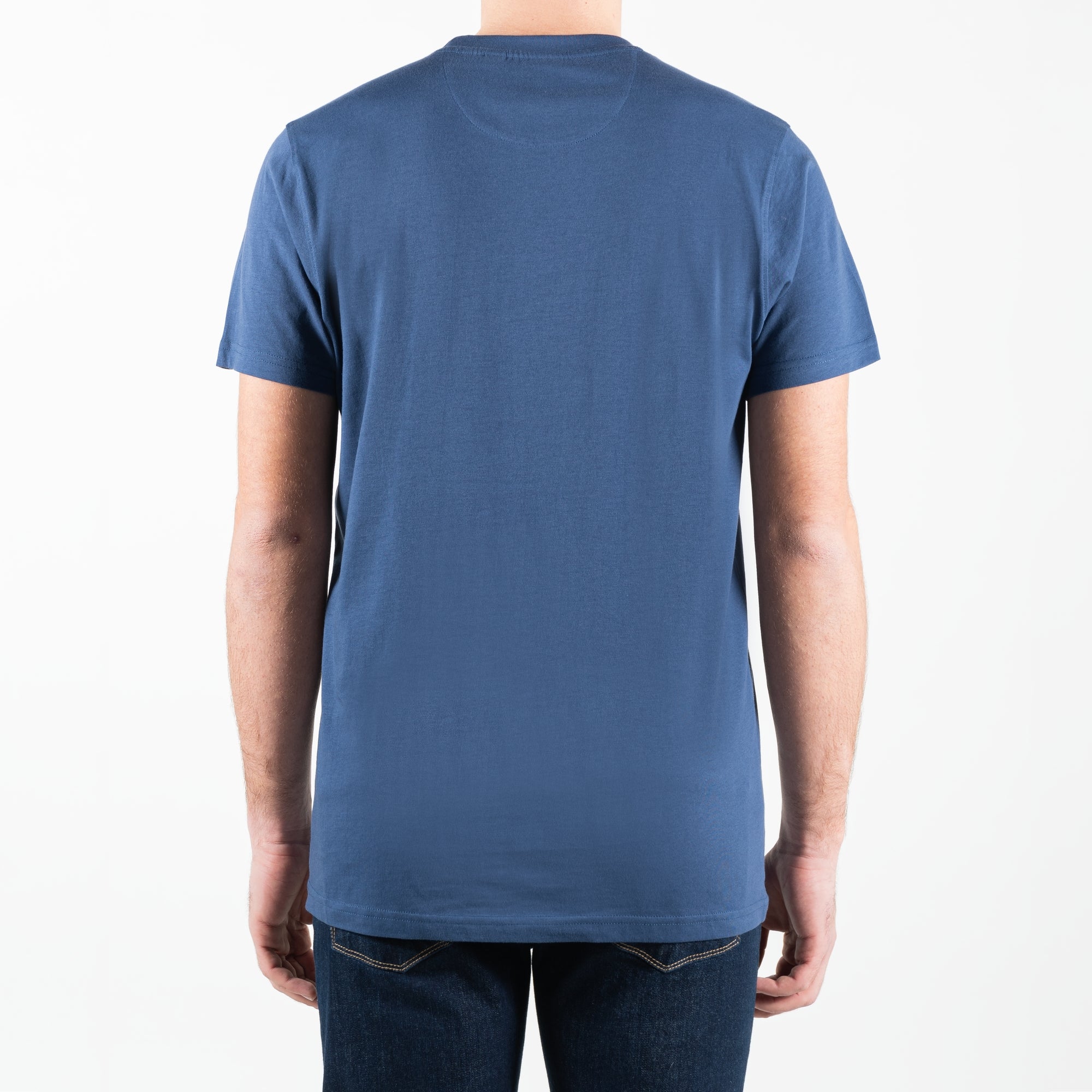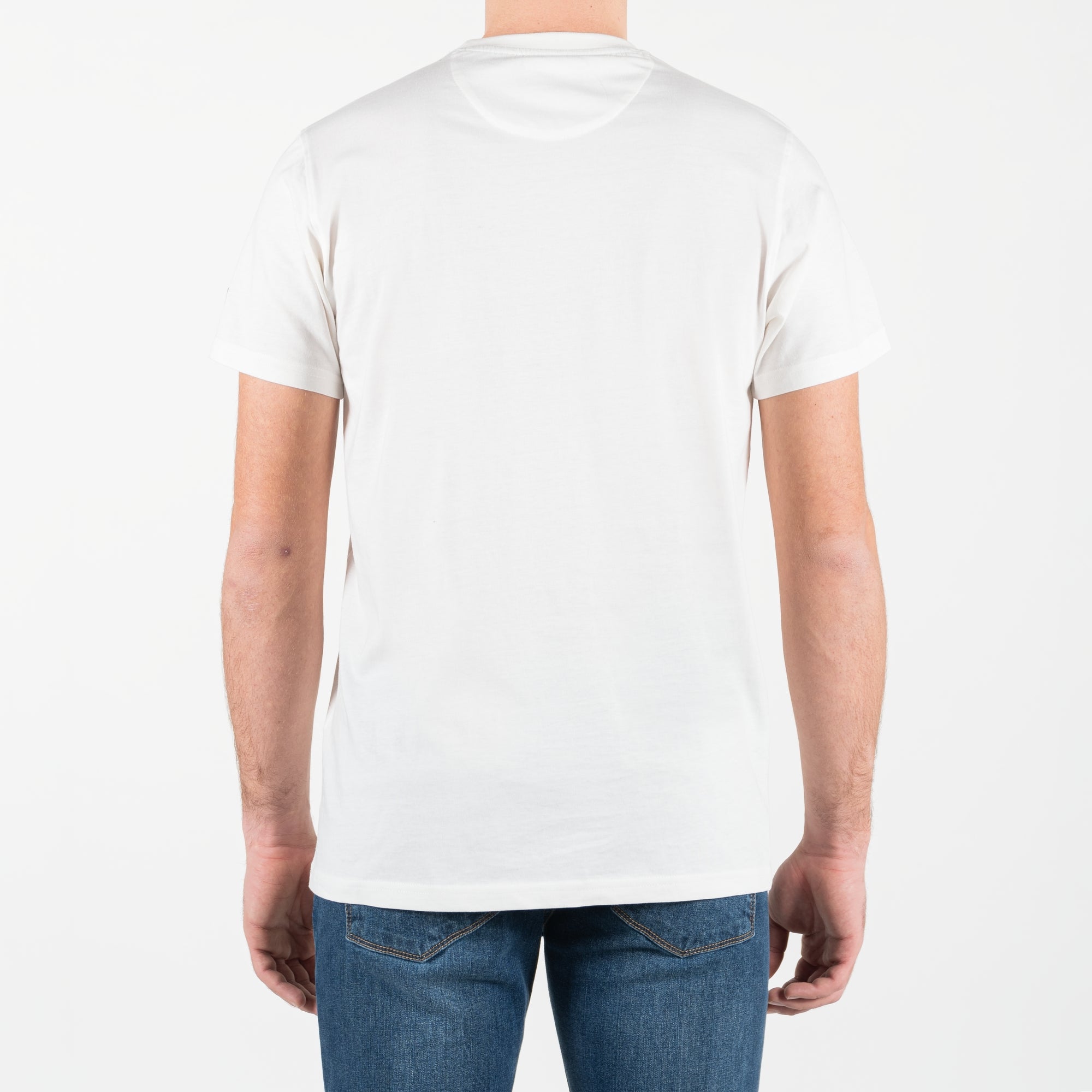 T-shirt con con ricamo centrale e dettaglio della bandiera americana intarsiata sulla manica sinistra